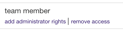 Next, select the desired team, and click add administrator rights under the Access column for the intended team member.
