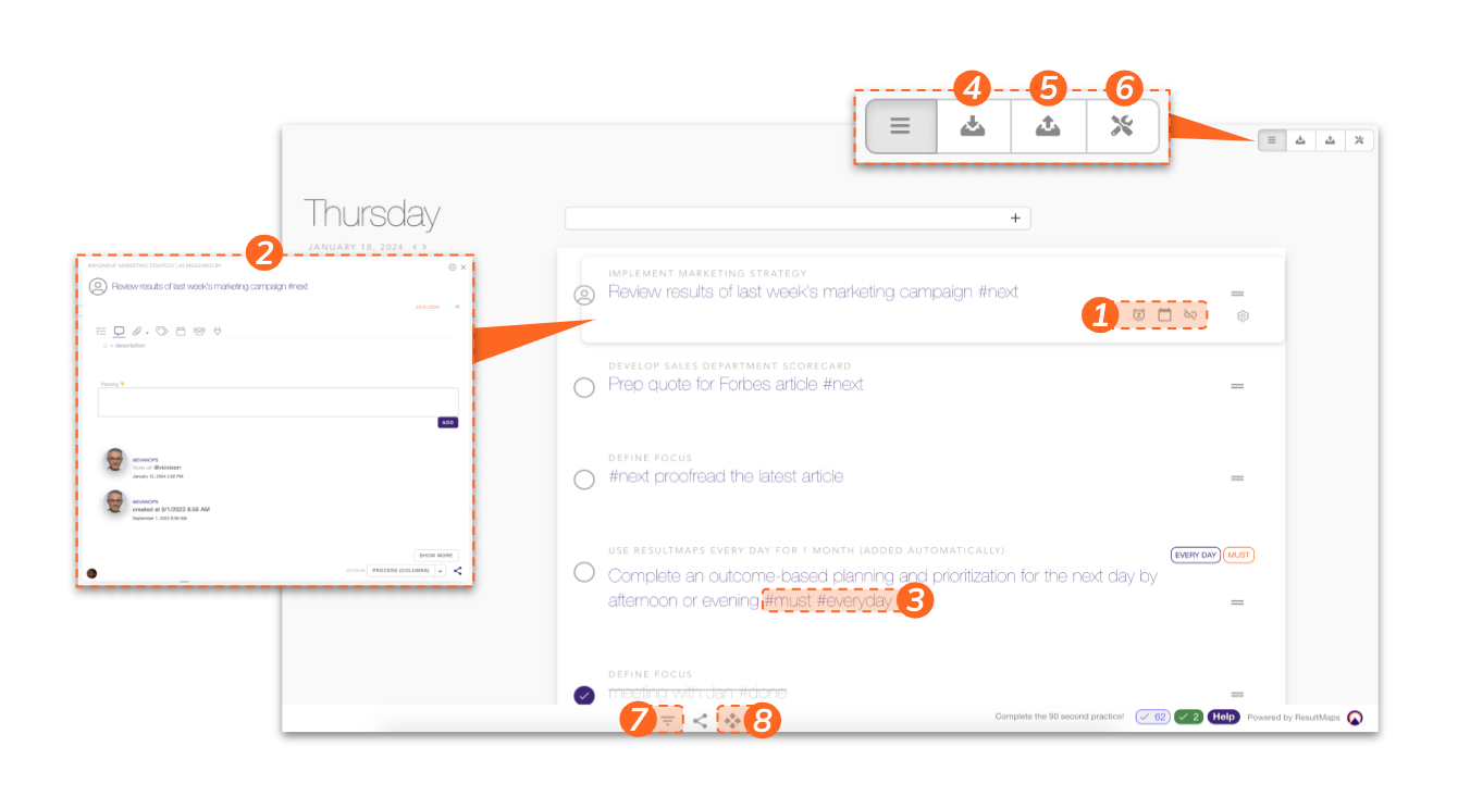 2. Add details and context to action items to make context-switching easier during busy times.